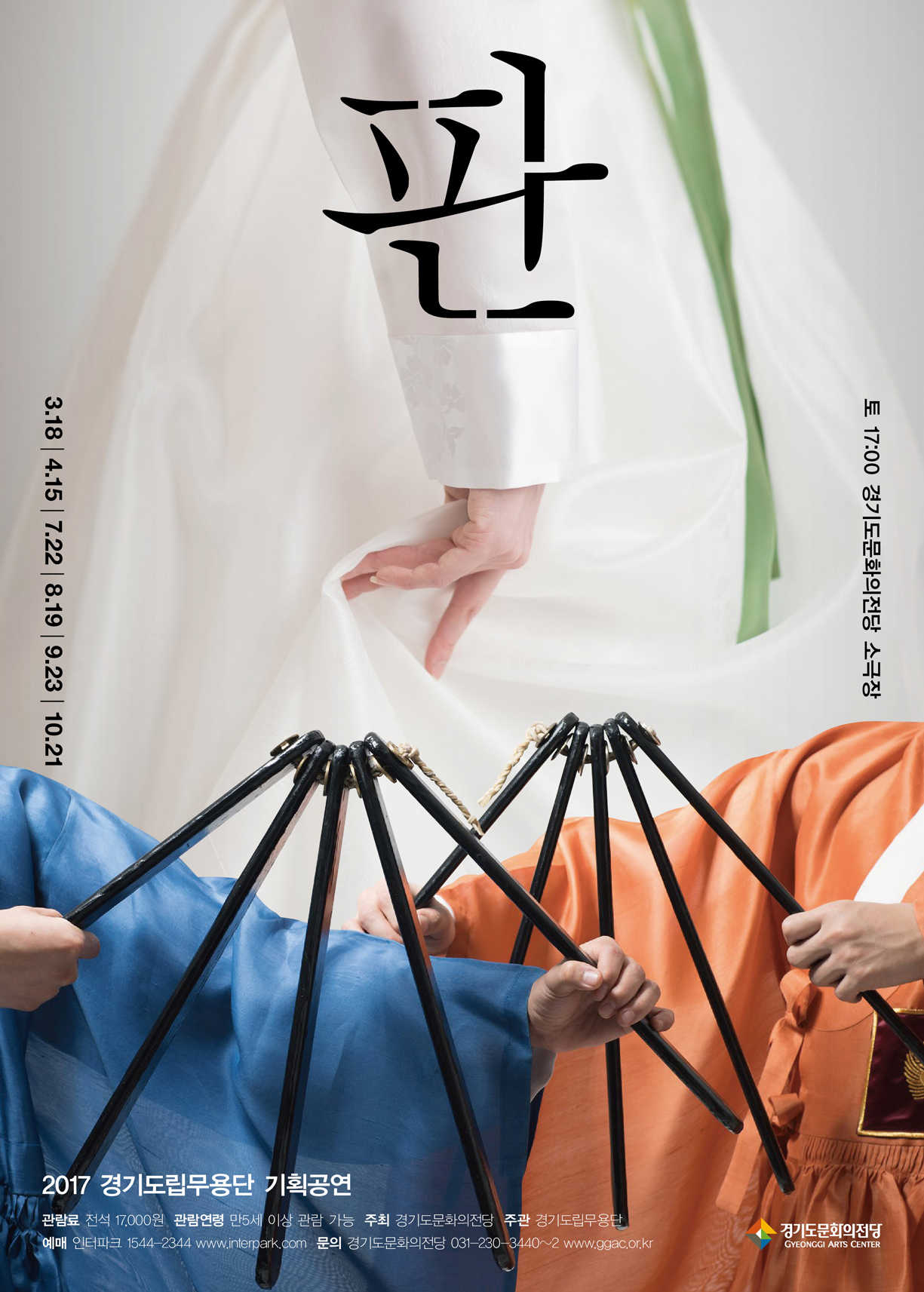 - 경기도립무용단(단장 김정학)이 3월 18일(토) 오후 5시 경기도문화의전당 소극장에서 기획공연<판>을 선보인다. <판>은 총 6회의 시리즈 공연으로, 매번 다른 이야기를 들려준다. 경기도립무용단이 올해 걷게 될 대장정의 첫 발을 내딛는 순간이다.