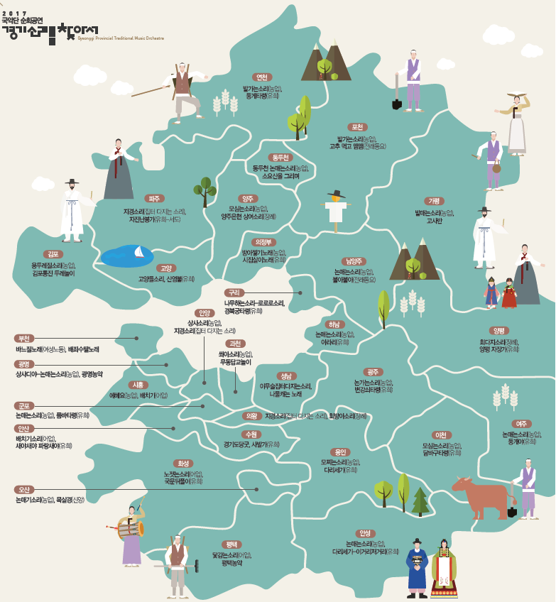 - 경기도립국악단(단장 최상화)이 오는 4월부터 순회공연 <경기 소리를 찾아서>를 시작한다. <경기 소리를 찾아서>는 경기도 31개 시 , 군의 지역특색이 담긴 소리를 재해석하여 음악으로 만들고, 이 음악을 다시 경기도 전역을 돌며 연주하는 음악회이다. 경기도립국악단의 경기 새천년 프로젝트의 일환인 <경기 소리를 찾아서>는 2017년부터 2018년까지 2년간 지속되는 장기 프로젝트로, 2017년 공연은 4월부터 9월까지 총 14회에 걸쳐 진행된다.