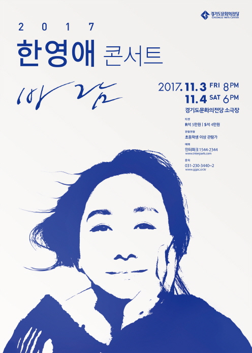 전국 소극장 투어 중인 한영애, 경기도문화의전당 찾아원조 디바 한영애가 11월 3일(금)부터 4일(토)까지 경기도문화의전당(사장 정재훈) 소극장에서 콘서트를 연다. 타이틀은 '바람'. 바람처럼 자유로운 그녀의 목소리가 한줄기 따뜻한 바람(wind)이 되어 관객들의 마음을 어루만지고, 함께 희망을 이야기하고픈 바람(wish)을 담았다.