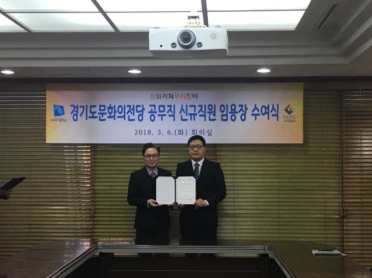 경기도문화의전당, 공무직 신규직원 임용장 수여식 개최경기도문화의전당(사장 정재훈)은 3월5일 오전 10시, 비정규직인 간접고용 근로자의 고용안정 및 처우개선을 위해, 기간제 근로자 및 간접근로자 46명을(3월 1일자) 공무직 직접고용 형태로 전환하고 임용장 수여식을 가졌다.