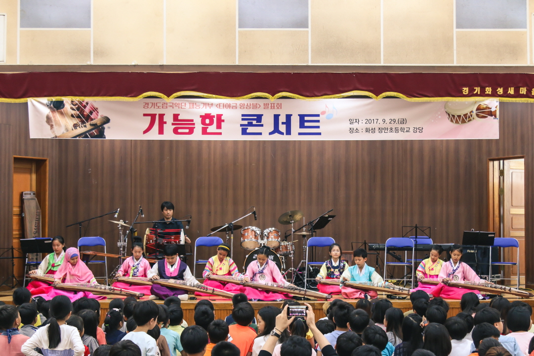 - 교육을 통해 개발된 본인의 능력을 선보이는 무대로써 학부모를 초청하는 등 네트워크 공간을 형성강사 경기도립국악단 가야금파트 단원 2명, 보조강사 1명(외부) 교육생 장안초등학교 학생 21명(경기도 다문화중점학교) 프로필