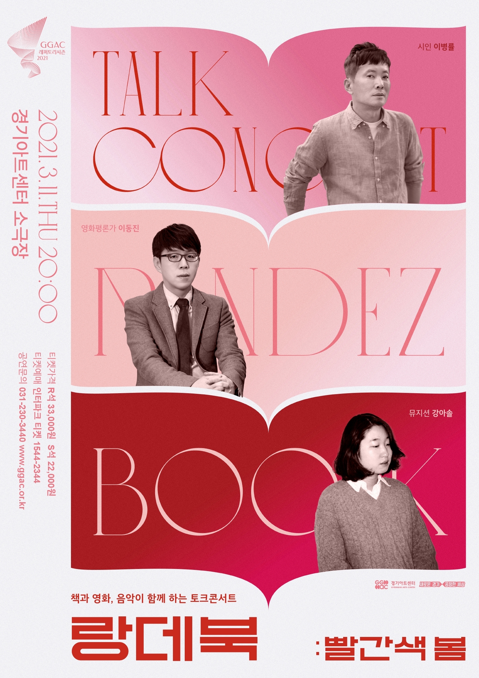 3월,‘빨간색 봄’을 맞이하다경기아트센터(사장 이우종)가 책과 영화, 음악이 함께하는 <토크 콘서트 : 랑데북> 시리즈를 진행하고 있는 가운데, 올해 시리즈의 첫 공연 <3월의 랑데북: 빨간색 봄>을 오는 11일(목) 경기아트센터 소극장 무대에서 선보인다.