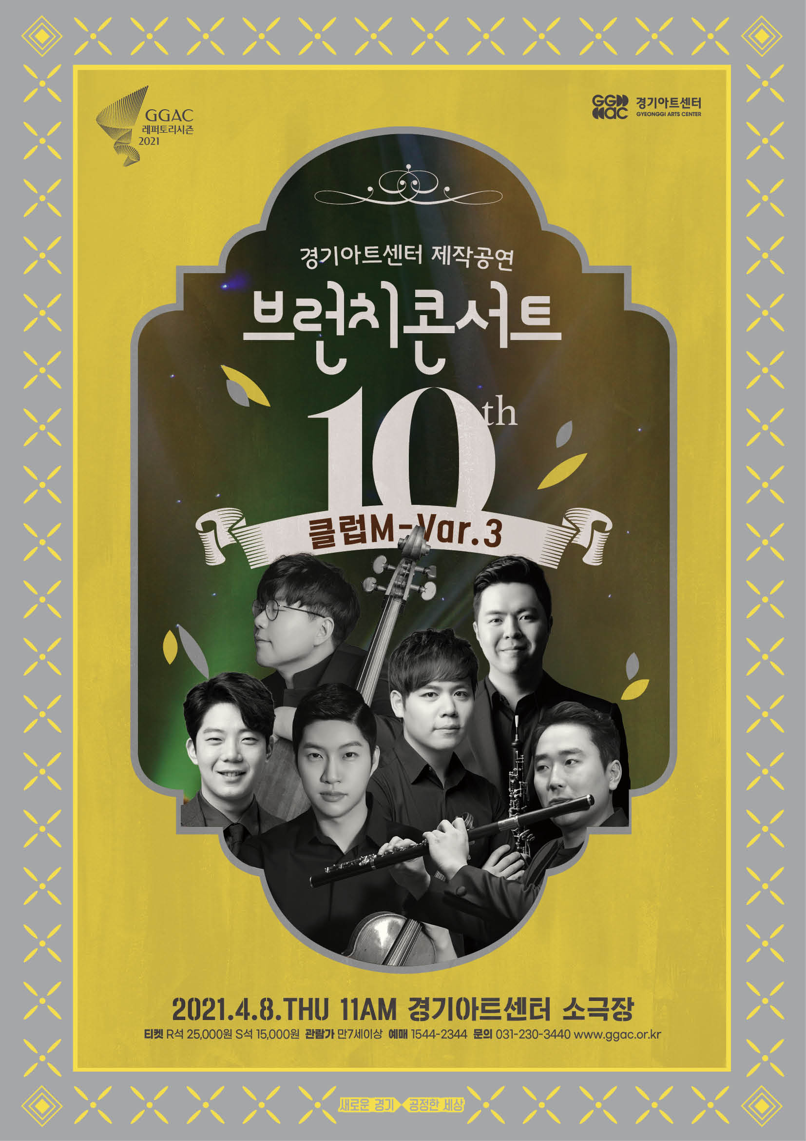 경기아트센터(사장 이우종) 대표 브랜드 공연 <브런치콘서트>가 올해 10주년을 맞이하여 세 차례에 걸쳐 다채로운 클래식 무대를 선보인다. 오는 4월 8일 오전 11시 경기아트센터 소극장에서 펼쳐지는 <4월의 브런치콘서트>는 ‘실내악계의 어벤저스’로 불리는 클럽M의 김재원, 조성현, 고관수, 김덕우, 이신규, 심준호 여섯 아티스트들이 만들어내는 울림으로 무대를 가득 채울 예정이다.